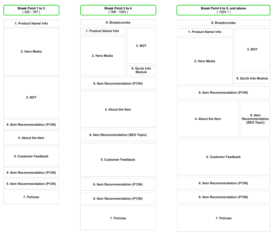 When we design the responsive experience, we use mobile first approach, and extend the design to other screen size. I always try to help our engineers to work faster and efficient. For responsive design, the high level information architecture helps our dev quickly understand how does each modules are placed for each break points. I also did a quick prototype that display different visual comps when browser’s size changes, along with the grid system. Our engineers love this prototype since they can get a quick view of how the responsive experience looks like in a glance!